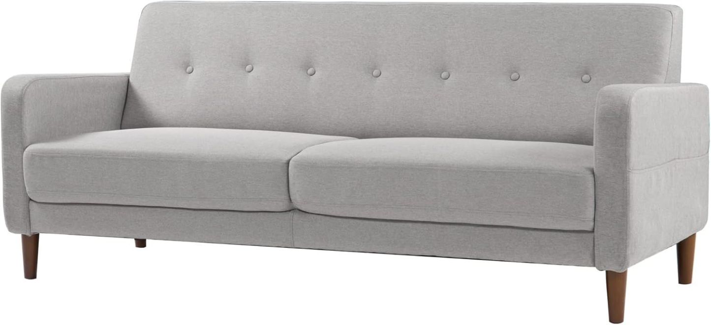 Zinus Adair Mid-Century Modern Armchair with Tufted Linen and Side Pockets, Light Grey